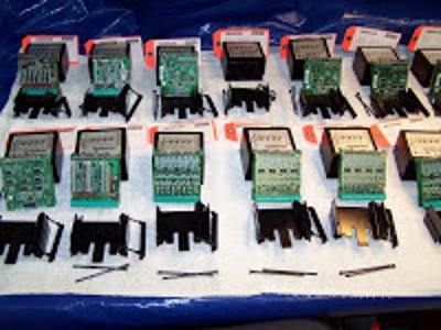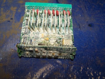 The parts for the GE Field Control were, as you can see from the photographs, in the worst possible condition. They were even worse than parts that had experienced the infamous wash-down while the panel door is open condition that we occasionally encounter. All pieces have obvious corrosion and rust. Each board's detritus, including sand and any loose parts, was then brushed off. After that, we ran each unit through a cycle in an ultrasonic cleaner; several parts required an additional or third cycle to completely remove the corrosion and grime.
